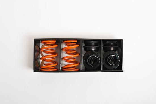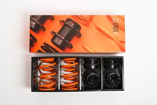 - MSSの最大の特徴であるデュアルスタック、トリプルレートスプリングはシングルのフロントスプリングとデュアルのリアスプリングの組み合わせで、純正のサスペンションの電子制御ダンパーと非電子制御ダンパーの機能を維持しながら、車高調整出来る機能が追加されます。