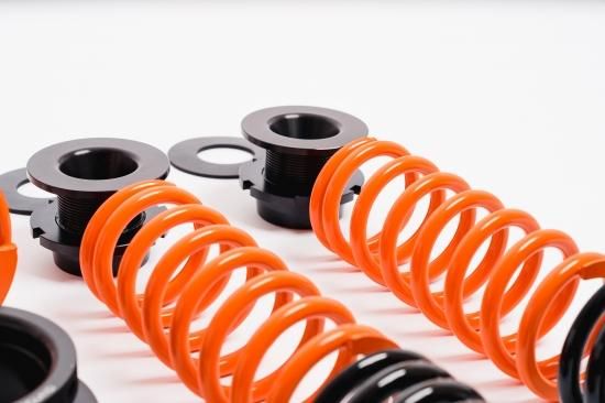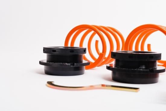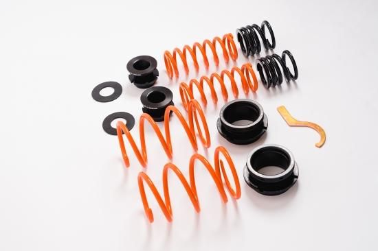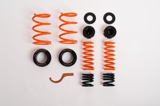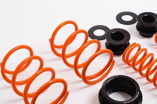 - MSSの最大の特徴であるデュアルスタック、トリプルレートスプリングはシングルのフロントスプリングとデュアルのリアスプリングの組み合わせで、純正のサスペンションの電子制御ダンパーと非電子制御ダンパーの機能を維持しながら、車高調整出来る機能が追加されます。